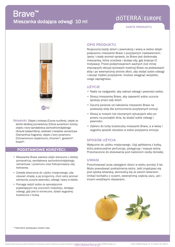 - Trzymaj w torbie buteleczkę mieszanki Brave, a w łatwy i wygodny sposób obudzisz w sobie pozytywne emocje.