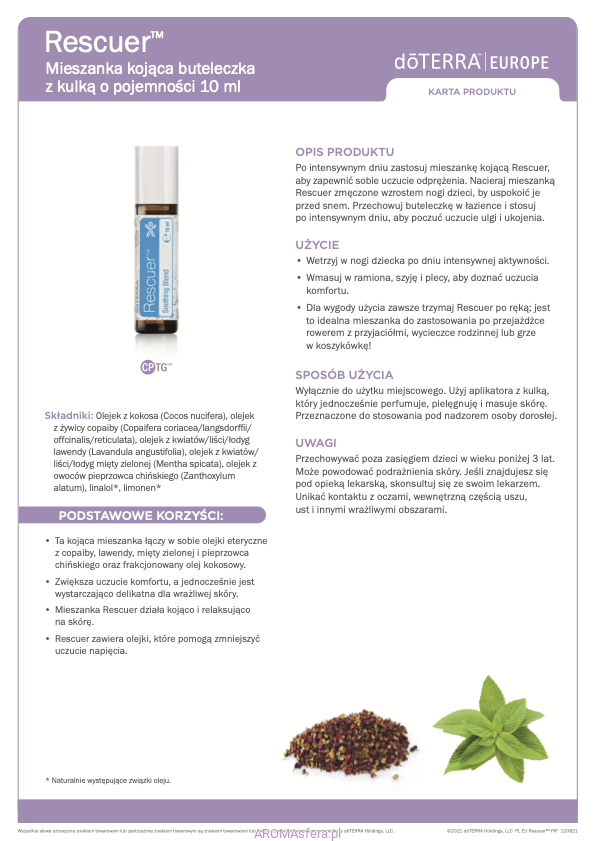 - Rescuer zawiera olejki, które pomogą zmniejszyć uczucie napięcia.