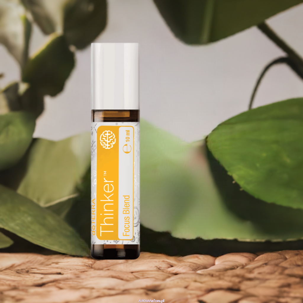 Mieszanka Thinker pomaga się skupić, gdy ciągle coś cię rozprasza. Wetrzyj mieszankę Thinker w skronie, nadgarstki i kark, by zyskać jasność umysłu. Unikalny ziołowy, słodkawy aromat pomaga zrozumieć rzeczy, które wydają się niejasne. Stosuj Thinker codziennie podczas nauki, by stworzyć przyjazną atmosferę i zwiększyć kreatywność oraz koncentrację.