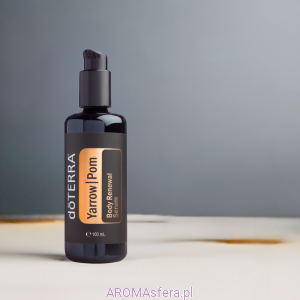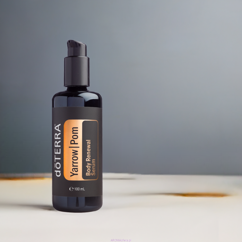 Serum regenerujące do ciała Yarrow|Pom to luksusowe, jedwabiste serum wypełnione silnymi bioaktywnymi związkami i proteinami chroniącymi skórę, które zapewniają jej najlepszą pielęgnację i wygląd. Olejek eteryczny z krwawnika i tłoczony na zimno olejek z nasion granatu działają razem dla uzyskania młodszego wyglądu skóry. Pozostałe olejki eteryczne CPTG™ z rumianku rzymskiego, yuzu, mięty pieprzowej i jagodlinu łagodzą skórę i wprawiają w pozytywny, odprężony nastrój. Olejki z jojoby, słonecznika, winogron i pestek drzewa arganowego zapewniają głębokie nawilżenie. Wyciąg z ziaren kawy i estry granatów przyczyniają się do rozświetlenia skóry i poprawy jej wyglądu, zapewniając intensywny blask od stóp do głów.