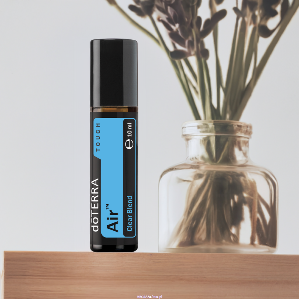 Doświadczaj korzyści płynących z zastosowania doTERRA Air będąc nawet w biegu dzięki delikatnemu i szybkiemu aplikowaniu mieszanki dōTERRA Air™ Touch! Ta miętowa, orzeźwiająca mieszanka przy inhalacji działa uspokajająco i kojąco. Mieszanka dōTERRA Air Touch jest wzbogacona olejkami, które pomagają ochłodzić i ożywić ciało, jednocześnie zapewniając drożność dróg oddechowych i łatwe oddychanie.