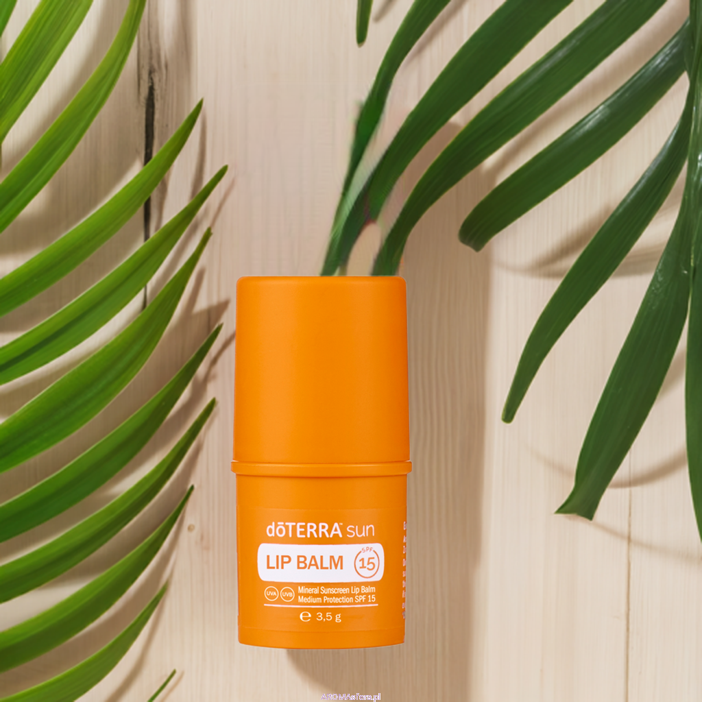 Codziennie okazuj miłość swoim ustom, sięgając po doTERRA sun. Ten mineralny balsam nie tylko zapewnia ochronę przed promieniowaniem UVA/UVB na poziomie SPF 15, ale też działa kojąco i zmiękczająco na usta, a także pomaga chronić je przed wysokimi i niskimi temperaturami oraz wiatrem. Opracowany na bazie tlenku cynku bez nanocząsteczek, by pozostawał na skórze i nie ulegał wchłanianiu, balsam do ust doTERRA sun wykorzystuje moc składników roślinnych, takich jak masło shea i olejek z pestek mongongo o nawadniających i odżywczych właściwościach, a ponadto zawiera olejki eteryczne z kadzidła, kocanki włoskiej, trawy cytrynowej i mięty zielonej oraz krzewu manuka.