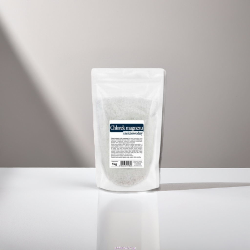 Opakowanie: 1 kg czystego chlorku magnezu w szczelnym opakowaniu