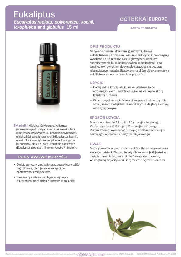 - Stosowany codziennie olejek eteryczny z eukaliptusa może działać korzystnie na skórę.