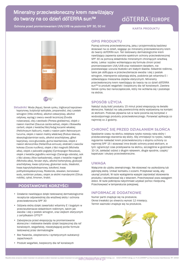 Mineralny przeciwsłoneczny krem nawilżający do twarzy na co dzień dōTERRA™ sun