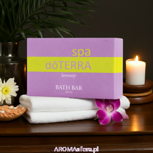 Mydło do kąpieli w kostce Serenity SPA dōTERRA to jedyne w swoim rodzaju mydło, które zapewnia wyjątkowe doznania, doskonale się pieni i ma cudowny zapach. W przeciwieństwie do zwykłych mydeł, zawierających silne surfaktanty, mydło dōTERRA pozostawia skórę czystą, gładką i miękką. Dzięki delikatnej pianie mydło z łatwością rozprowadza się po skórze, dokładnie ją myjąc i nawilżając. Kojący i relaksujący aromat mydła, uzyskany dzięki wykorzystaniu mieszanki odprężającej doTERRA Serenity, przeniesie Cię w stan błogiego relaksu. Z naszym naturalnym, jedynym w swoim rodzaju mydłem doTERRA stworzysz niezapomniane domowe, oczyszczające, aromatyczne spa.