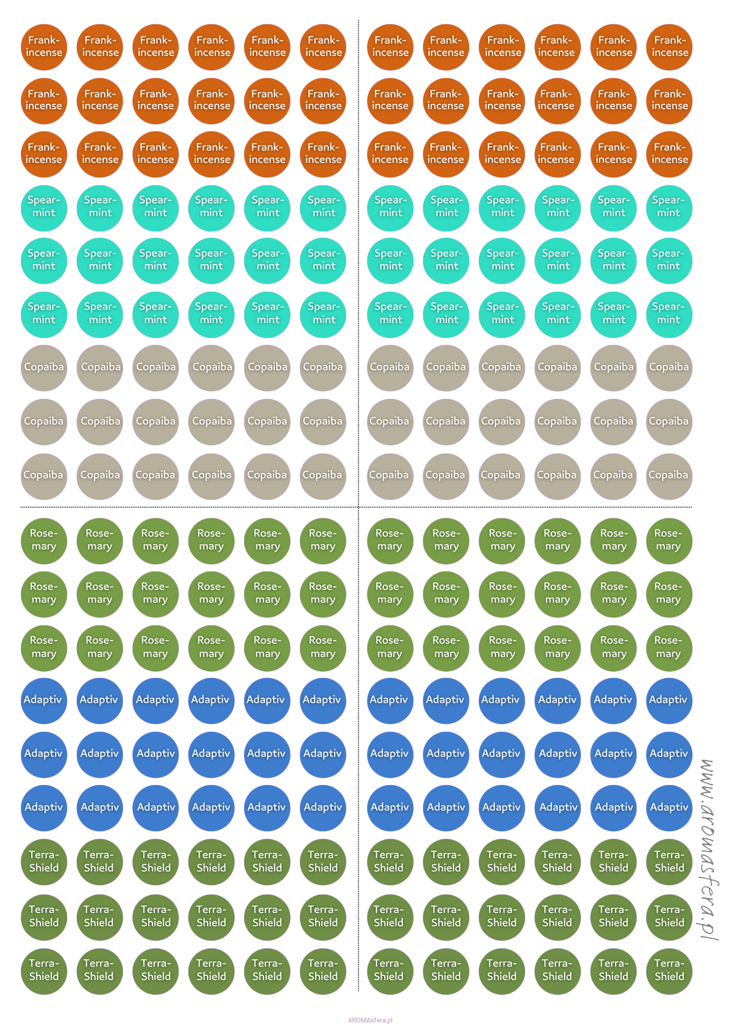 Naklejki na olejki C (kadzidłowiec, mięta zielona, copaiba, rozmaryn, adaptiv, terra shield)