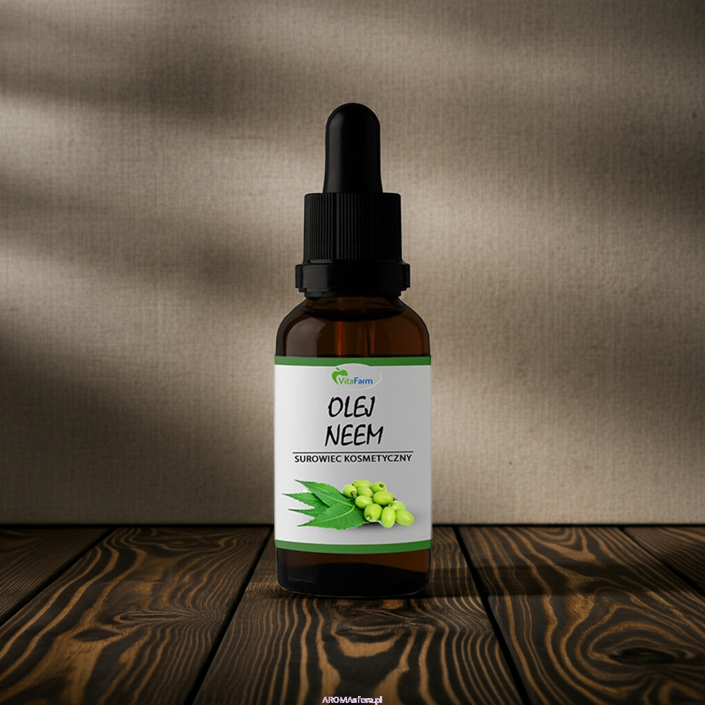 Naturalny, nierafinowany, kosmetyczny, tłoczony na zimno olej z nasion drzewa miodli indyjskiej. Ze względu na działanie antybakteryjne, przeciwwrzodowe, często stosowany w leczeniu egzem. Reguluje pracę gruczołów łojowych, zmniejsza ilość wydzielanego sebum, likwiduje pryszcze.
