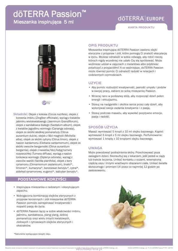 Pochodzący z Madagaskaru olejek eteryczny z imbiru dōTERRA pozyskiwany jest ze świeżego kłącza – podziemnej łodygi, która wypuszcza korzenie. Imbir jest składnikiem wielu potraw kuchni azjatyckiej, nadając im pikantny smak i wyrazisty aromat. W tradycji zachodniej imbir plasuje się raczej jako przyprawa potraw słodkich, takich jak imbirowe pierniki i ciasteczka.