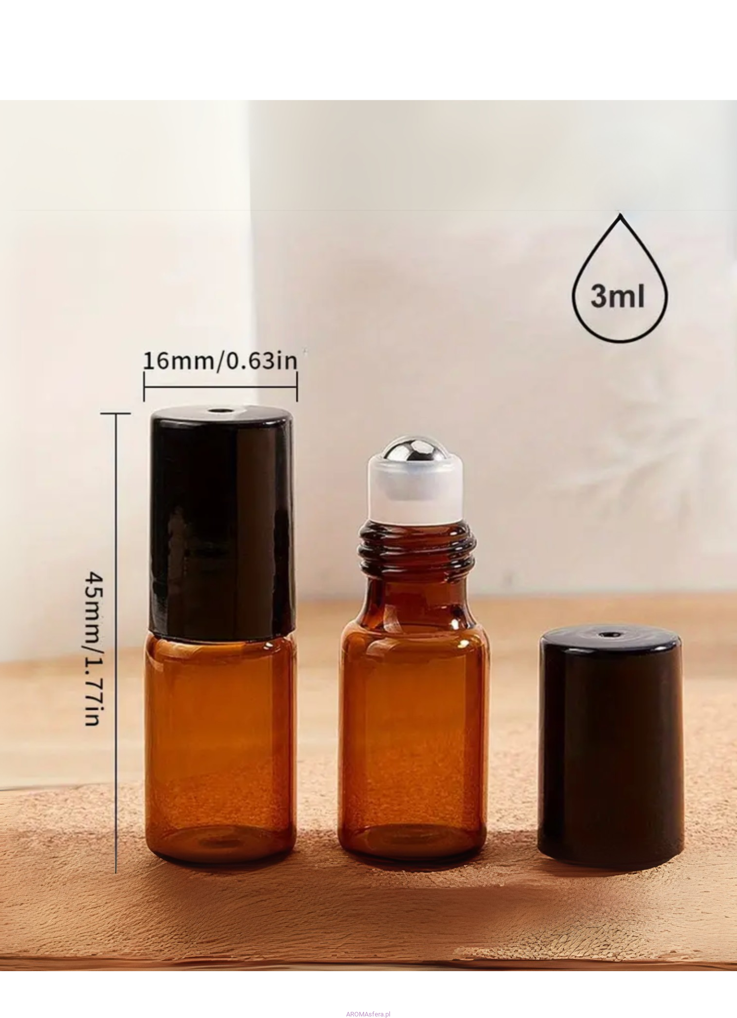 Elegancka i praktyczna butelka roll-on o pojemności 3 ml to idealne rozwiązanie do przygotowywania małych porcji olejków eterycznych gotowych do użycia miejscowego, mieszanek zapachowych oraz naturalnych perfum.