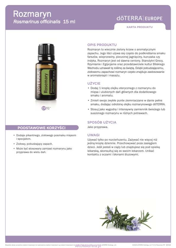 - Stosuj jako wygodny i intensywny zamiennik świeżego lub suszonego rozmarynu w różnych potrawach.