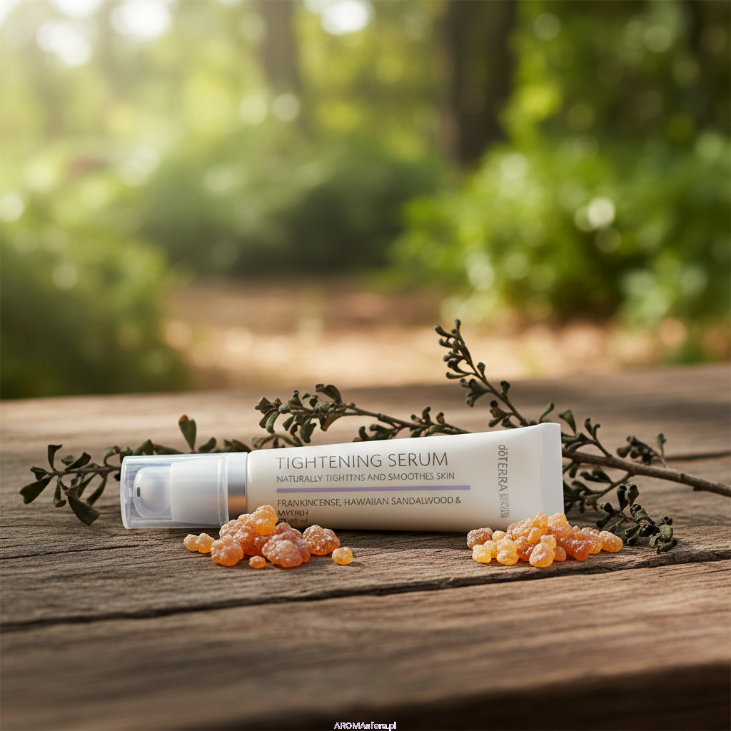 Składające się z olejków eterycznych CPTG (Testowana Certyfikowana Czysta Jakość) z kadzidłowca, sandałowca hawajskiego i mirry Serum napinające doTERRA to laboratoryjna formuła, która zwiększa stopień nawilżania skóry i pozwala redukować wszelkie niedoskonałości. Serum napinające ma działanie liftingujące i wygładza skórę dzięki naturalnym ekstraktom i innym wyselekcjonowanym składnikom, które – jak dowiodły badania – pozwalają uzyskać bardziej jędrną, młodziej wyglądającą skórę.
