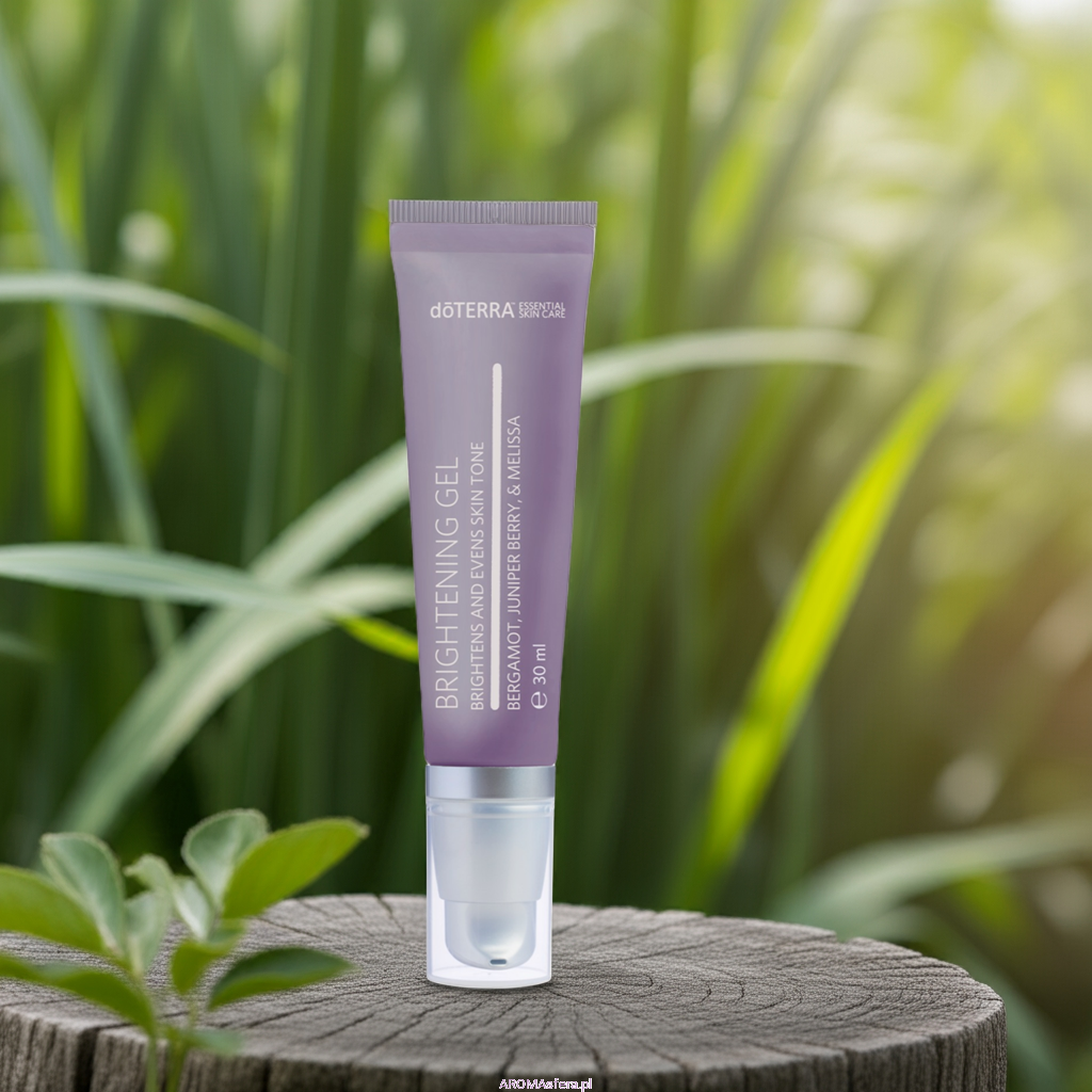 Żel rozjaśniający doTERRA rozświetla i wyrównuje koloryt skóry, łącząc w sobie olejki eteryczne CPTG z bergamotki, jałowca i melisy z naturalnymi ekstraktami, witaminami i najnowocześniejszymi technologiami. Żel rozjaśniający to delikatny i skuteczny sposób na zauważalne rozświetlenie skóry poprzez redukcję ciemnych plam i przebarwień bez użycia ostrych środków chemicznych stosowanych w innych produktach rozjaśniających. Może być używany na całej powierzchni lub w konkretnych miejscach na twarzy.